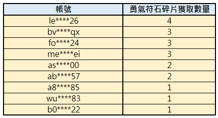 3.若未於時間內進行回報,活動獎勵【勇氣符石碎片】將於約定時段發放至得獎帳號內的第一位角色中,還請留意。