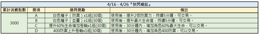 ※例如小武在活動期間共消費「3000點數」,可選擇兌換獎項Ax1和「暗黑騎士武器箱x1個」。